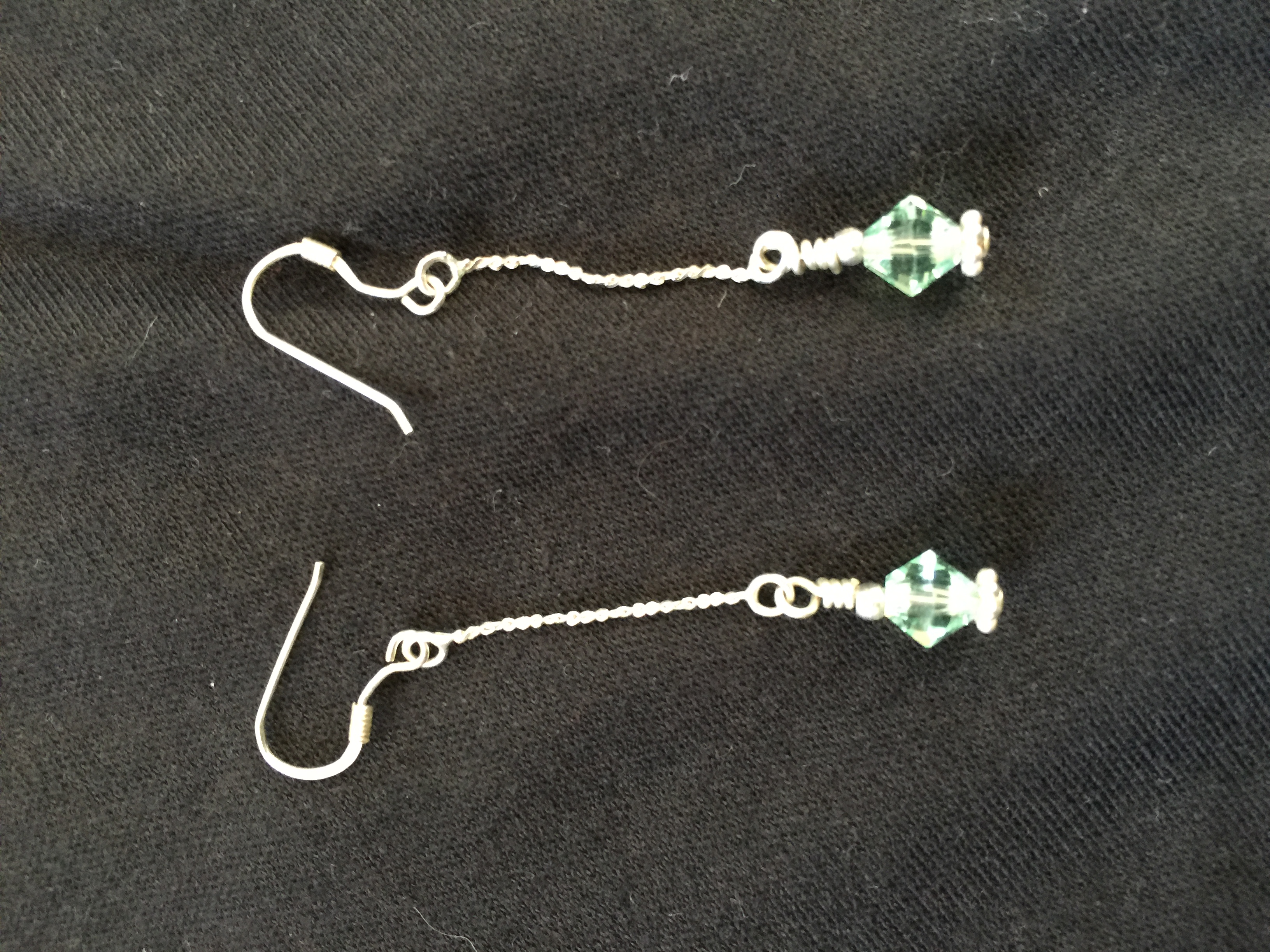 Sterling silver chain earrings with green swarovski crystals. 1 1/2"