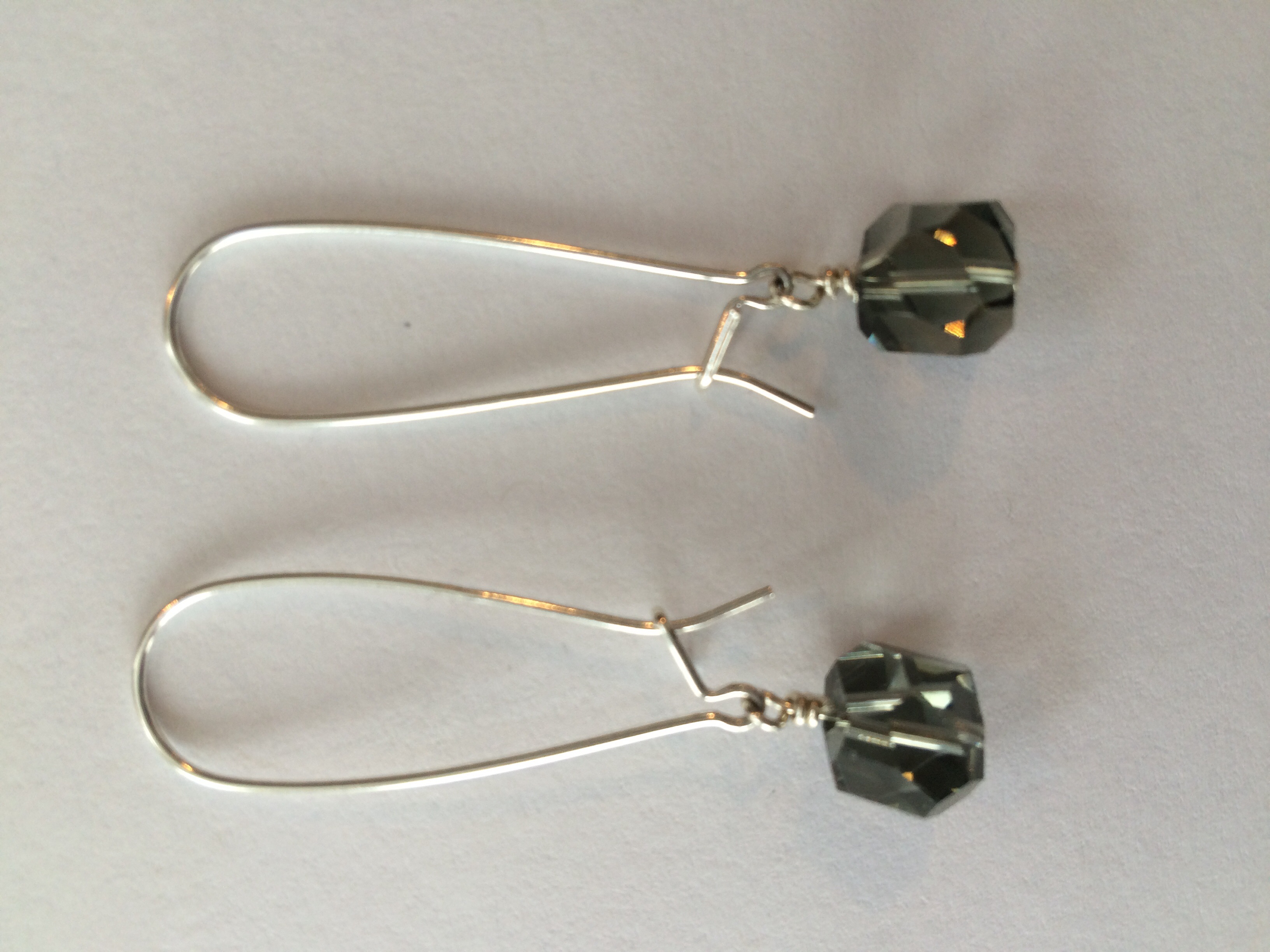 Smokey grey swavorski crystal earrings. 1 1/4" sterling silver lever backs. 1 3/4" dangle.