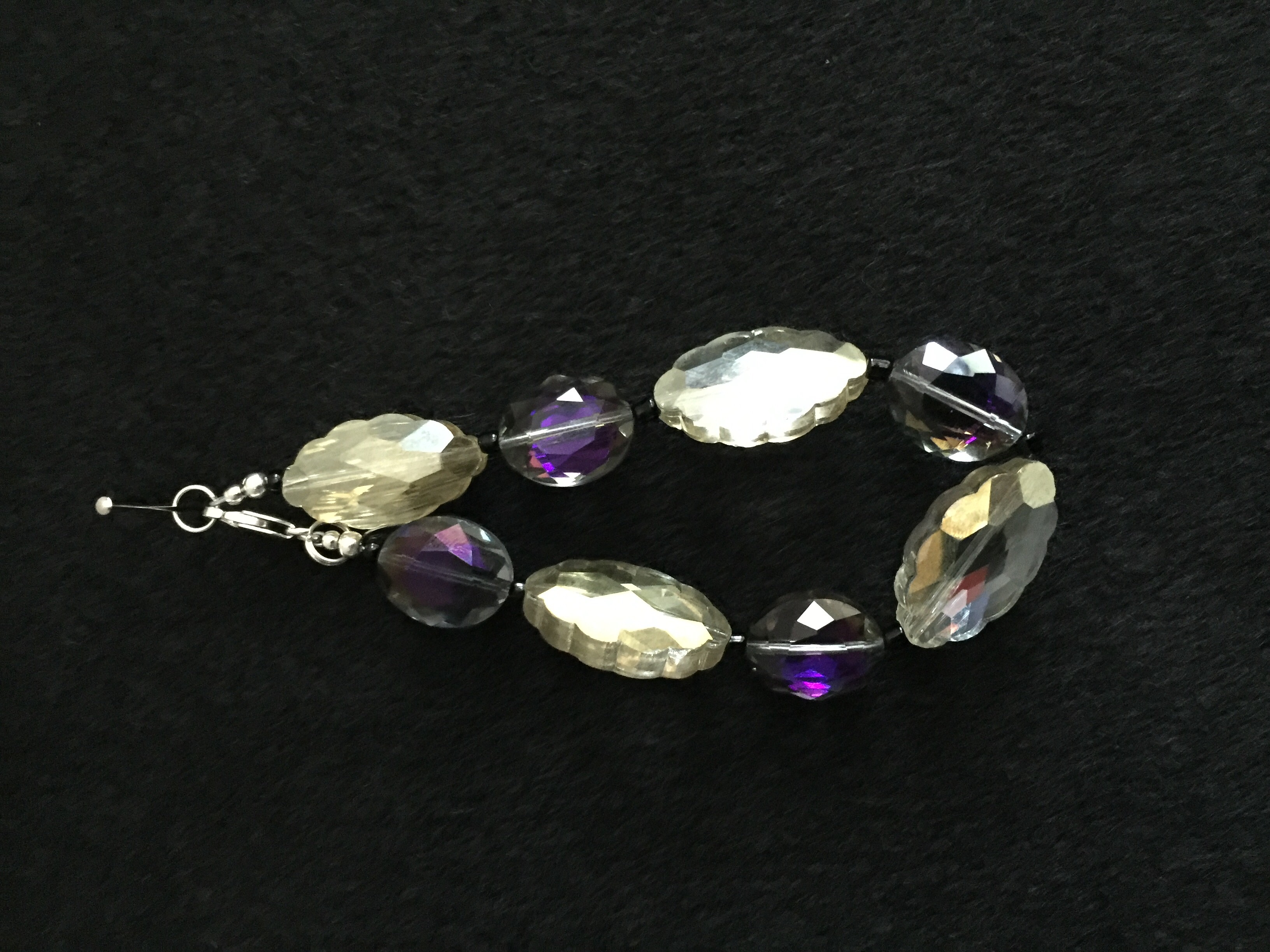 8 1/4" glass beaded bracelet with sterling silver lobster clasp and Suzi tag.