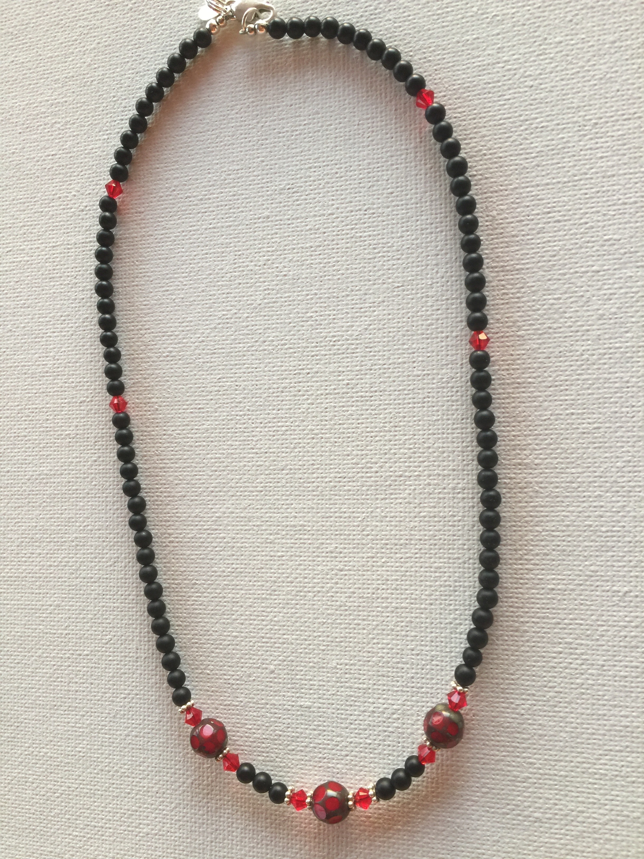 16" glass beaded necklace with swavorski crystals. Sterling silver accents, lobster clasp and authentic Suzi tag.