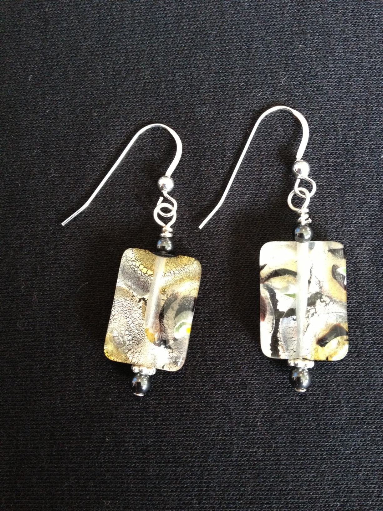1 1/4" sterling silver earwire dangles. Glass beads with sterling silver components.