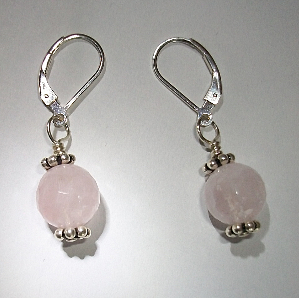 Pink quartz earrings with sterling silver accents. Sterling silver lever backs.