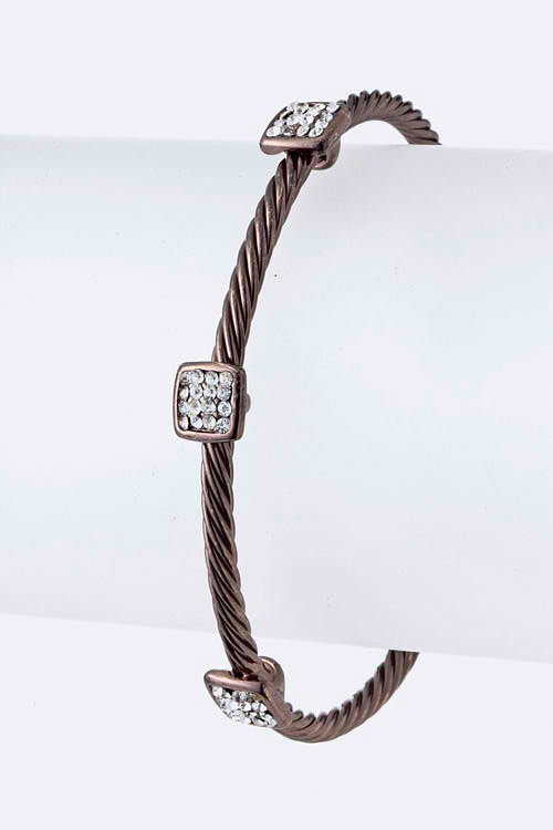 Crystal accented chocolate cable cuff. Scallop cuff.